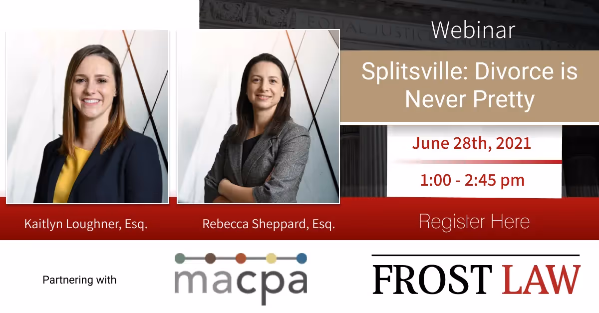 Splitsville: Divorce is never pretty. One aspect that is often overlooked are the tax consequences. Join Rebecca Sheppard and Kaitlyn Loughner of Frost Law as they discuss what to look out for, including Innocent Spouse Defenses.