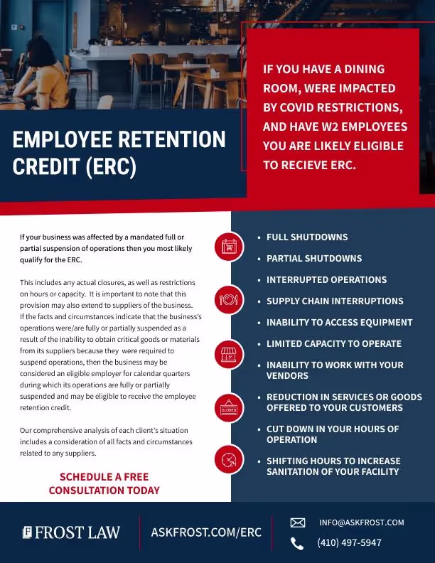 If your restaurant was affected by a government mandated suspension of operations then you most likely qualify for the ERC.