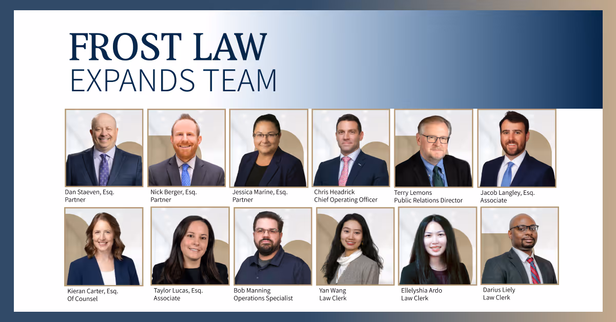 “These new members of our team add depth and expertise to the practice,” said Glen Frost, the firm’s Founder and Managing Partner. “Bringing in top-tier legal talent and creating positions like our first Chief Operating Officer will help our firm continue to grow and meet the needs of our clients across the nation.”